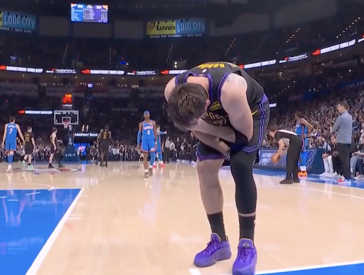 第三节比赛中,东契奇在一次无对抗的进攻中意外受伤。他面对防守准备停球投篮时,左腿突然感到不适。东契奇随即放弃进攻,捂着自己的大腿后侧,随后躺倒在地,脸上露出痛苦的表情。此后,他返回了更衣室。