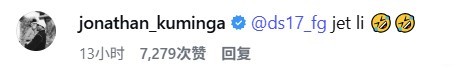 当媒体对这一幕进行报道时,施罗德的前队友库明加也现身评论区,他对此调侃:“你李连杰啊?”