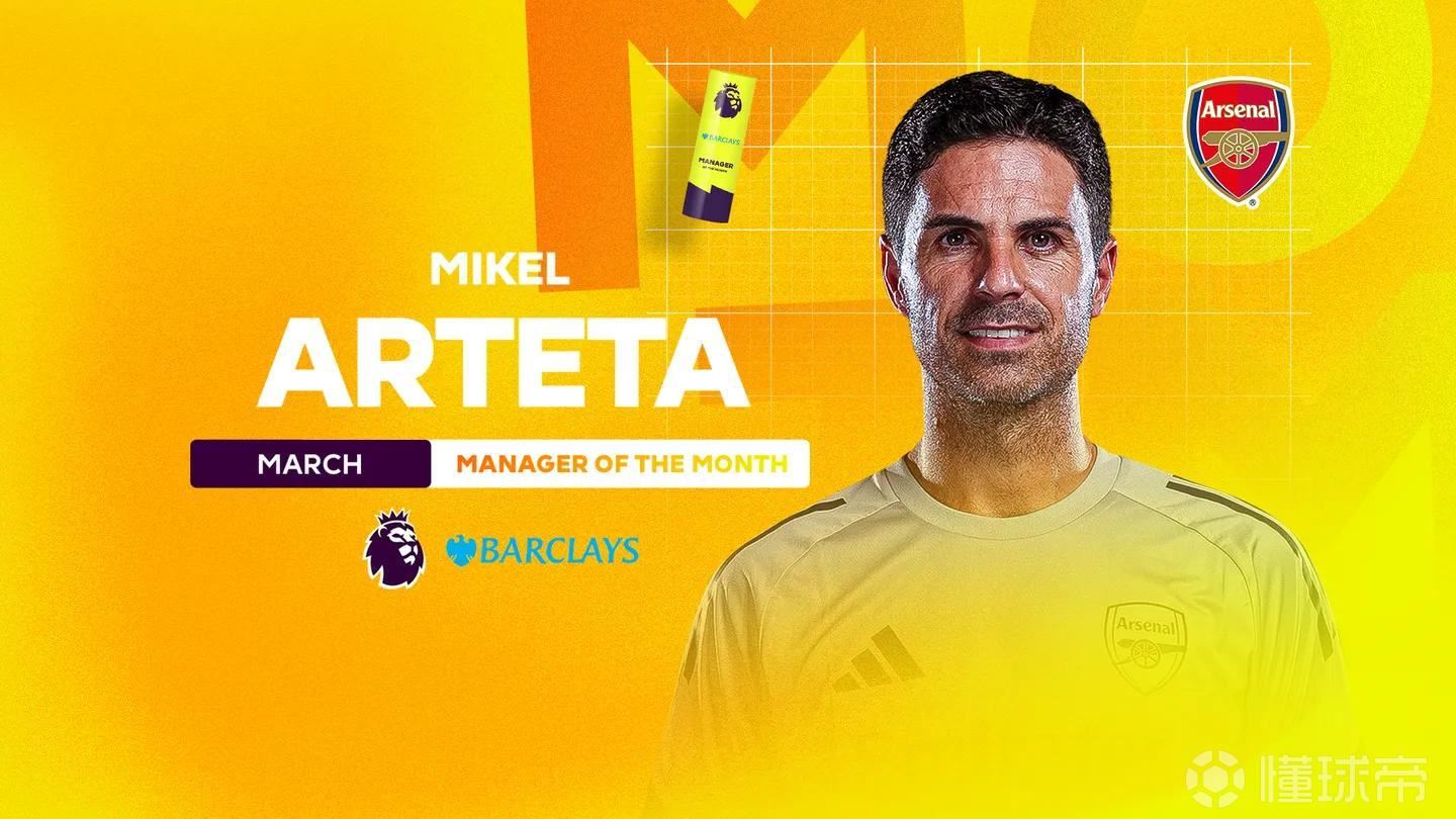 这位西班牙教头凭借三月份的完美表现摘得该奖,他的球队接连击败切尔西、布莱顿和埃弗顿,枪手也是当月英超唯一一支保持全胜的球队。